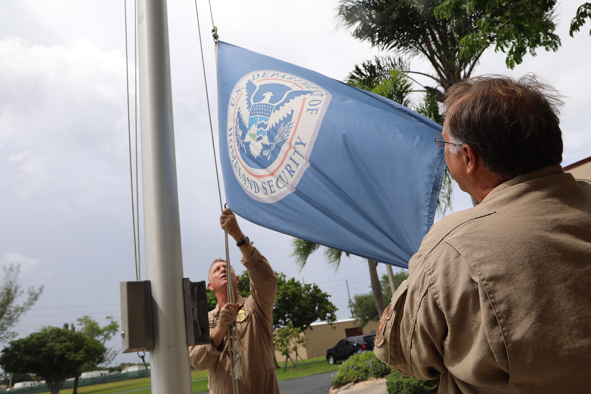 Photo: Agents lowering the DHS flag, taken September 1, 2019 by CBP Photography and available via Wikimedia commons, CC BY-SA 4.0.