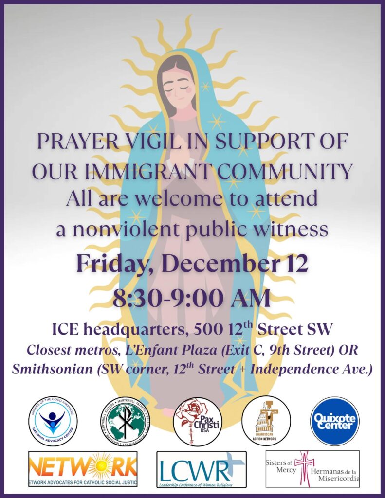 Join us for a prayer vigil in support of our immigrant community on the Feast of Our Lady of Guadalupe. All are welcome to attend this nonviolent public witness of love and welcome for immigrants.